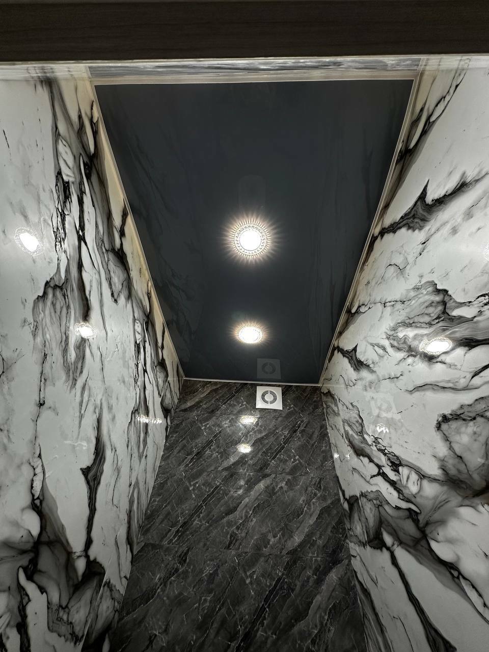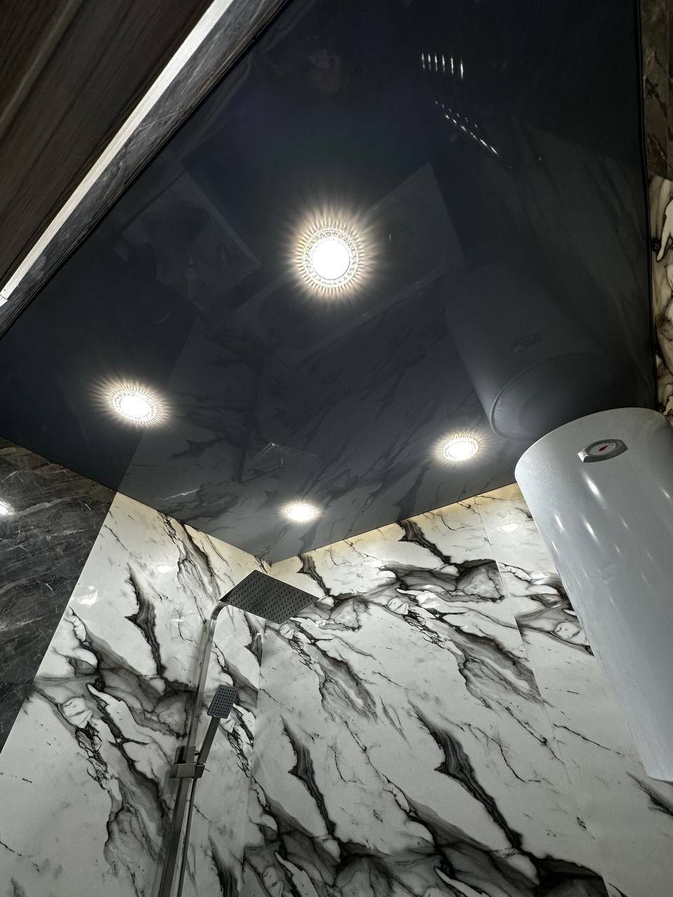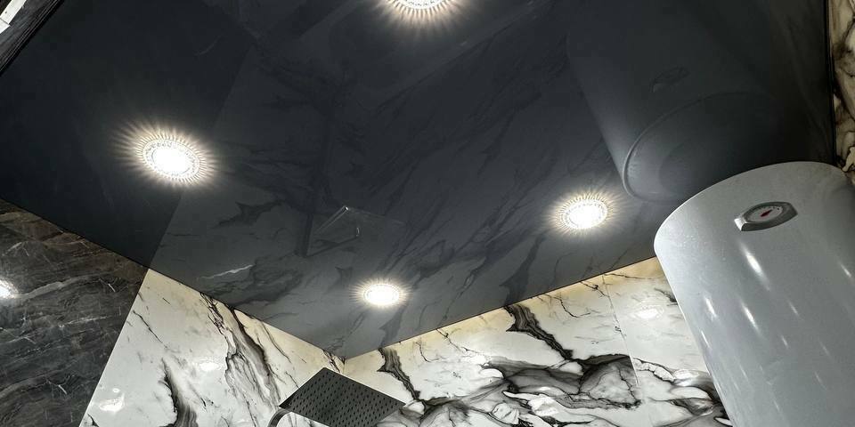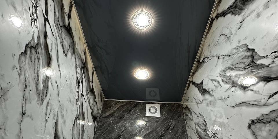 - в ванной комнате — используем влагостойкие ПВХ‑полотна, устойчивые к перепадам температуры и образованию плесени;