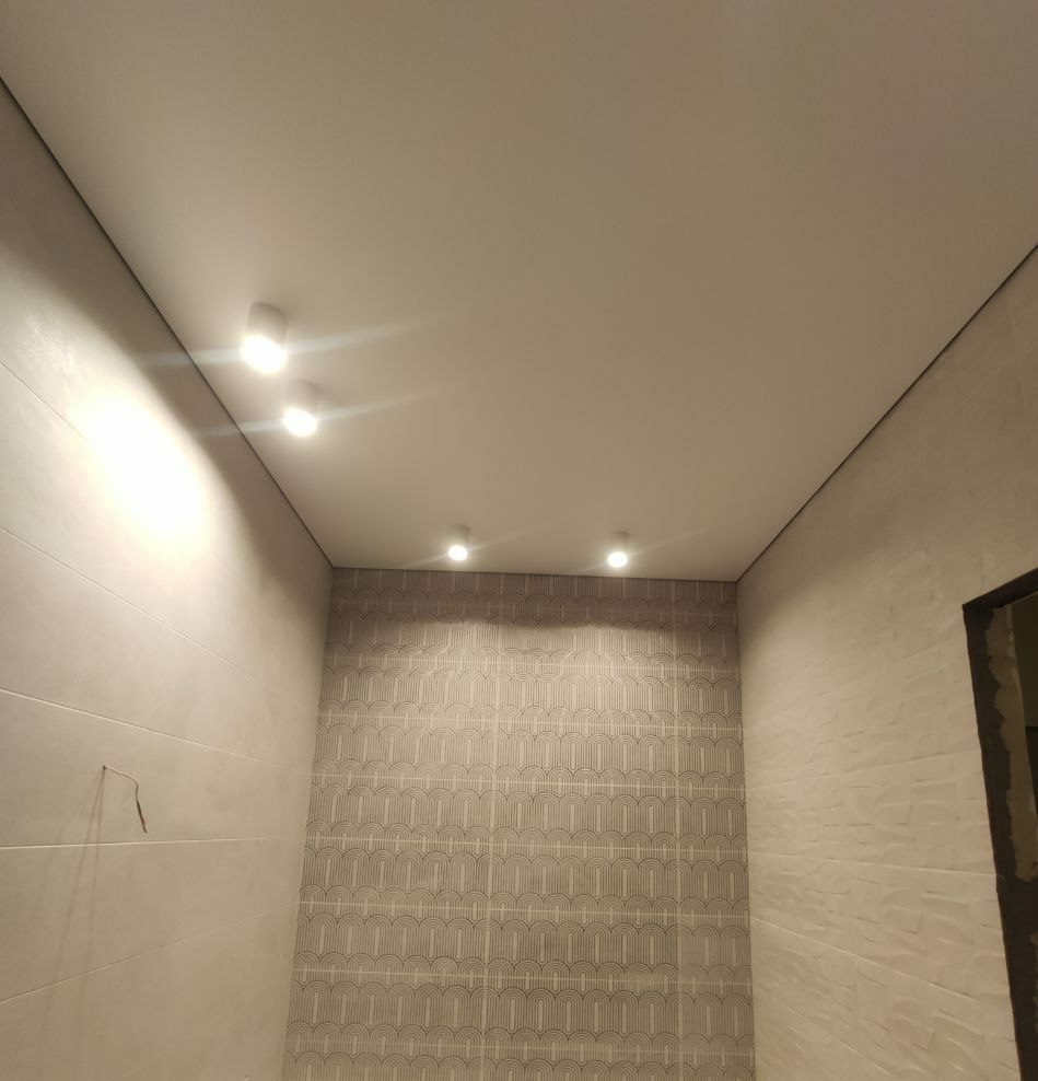 - в санузле — монтируем практичные потолки с герметичным покрытием, защищающим от протечек;